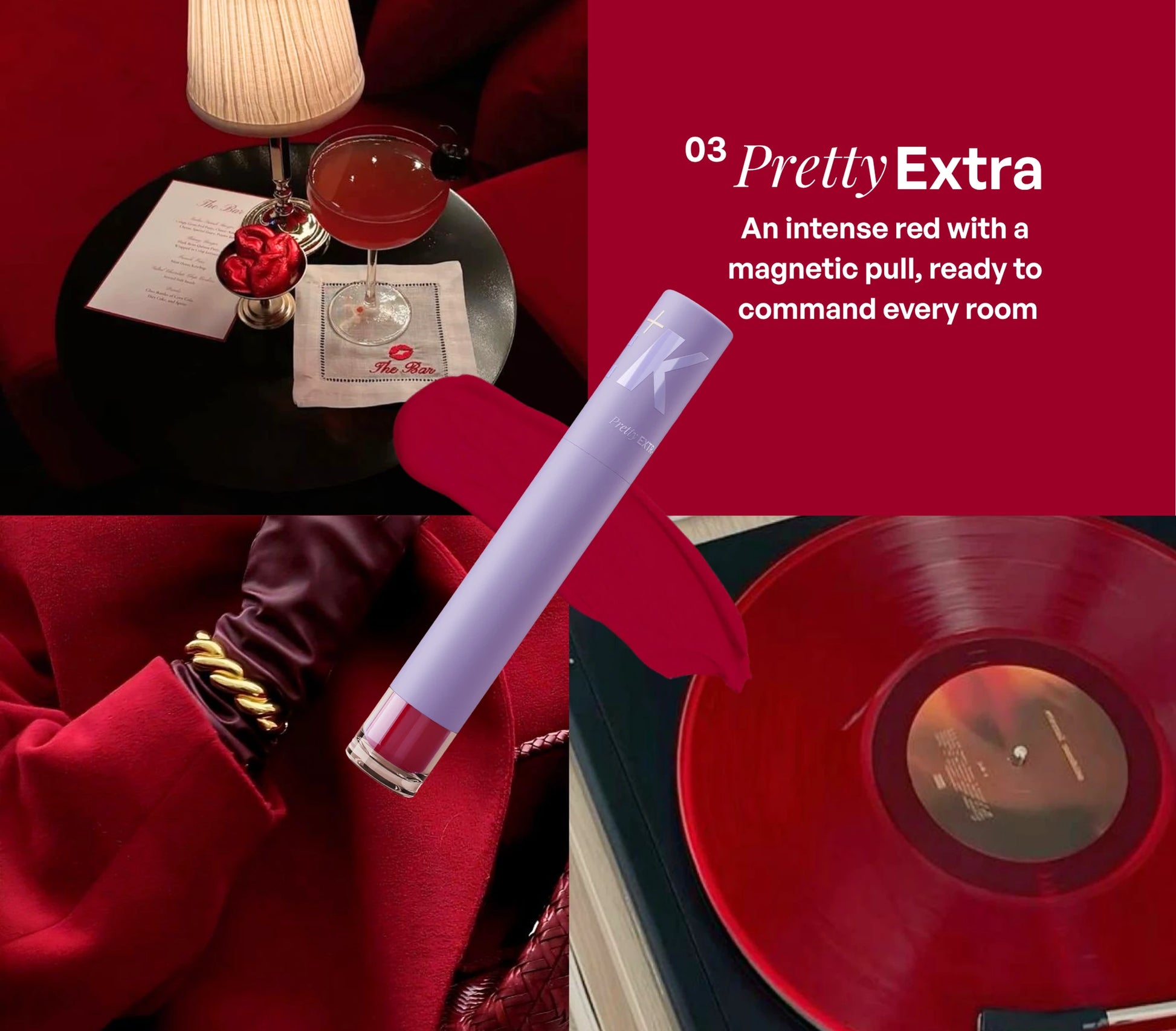 Our creamy formula is loaded with high-impact pigments, delivering intense colour payoff and full coverage in a single swipe. Get ready for truly vibrant lips!